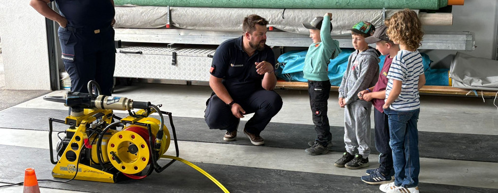 Die Kinder wurden herzlich von den Kameradinnen und Kameraden der Feuerwehr empfangen. Nach einer kurzen Einführung in die Aufgaben und Ausrüstung der Feuerwehr ging es direkt los: Die Kinder durften selbst in die Rolle von Feuerwehrfrauen und -männern schlüpfen und verschiedene Stationen ausprobieren.